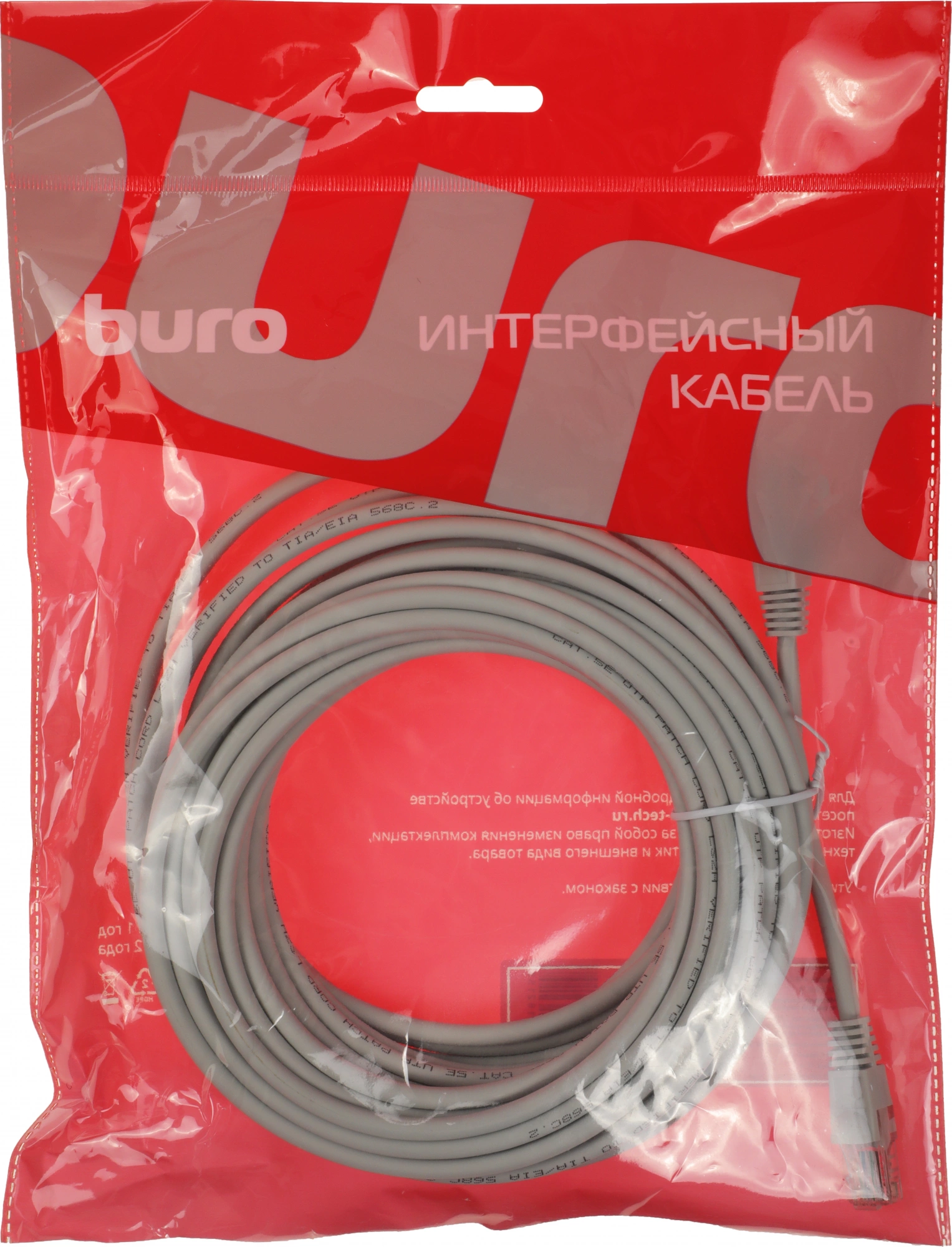 Патч-корд BURO 1Гбит/с UTP 4 пары cat.5E 10м серый RJ-45 (m)-RJ-45 (m) [UTP-5E-10M-G-LSZH]