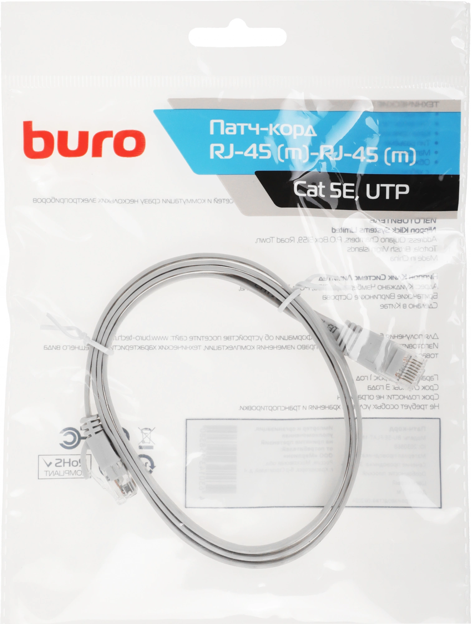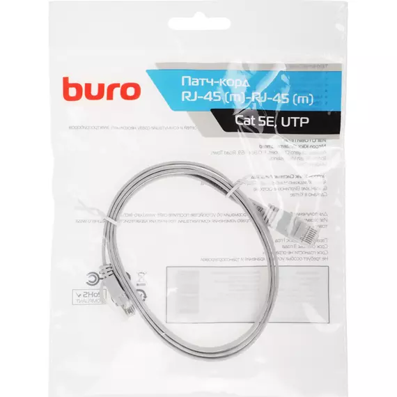 Патч-корд BURO Flat 10Гбит/с 4 пары cat.5E Cu molded 1м серый RJ-45 (m)-RJ-45 (m) [BU-5E-FLAT-1M-G]