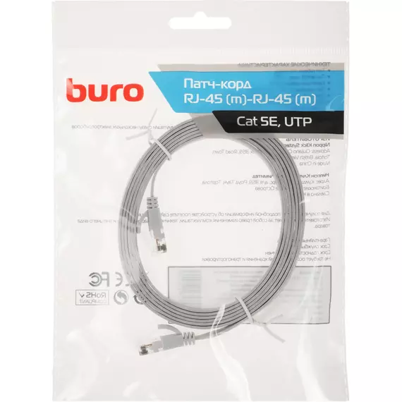 Патч-корд BURO Flat 10Гбит/с UTP 4 пары cat.5E Cu molded 2м серый RJ-45 (m)-RJ-45 (m) [BU-5E-FLAT-2M-G]