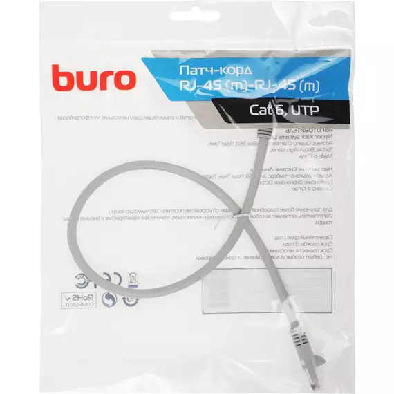 Патч-корд BURO UTP 4 пары cat.6 CCA molded 0.5м серый RJ-45 (m)-RJ-45 (m) [UTP-6-0.5M-G]