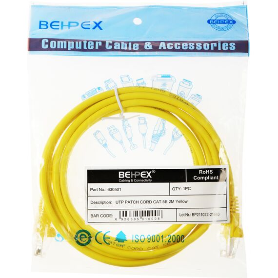 Патч-корд cat.5E molded 2м желтый RJ-45 (m)-RJ-45 (m)