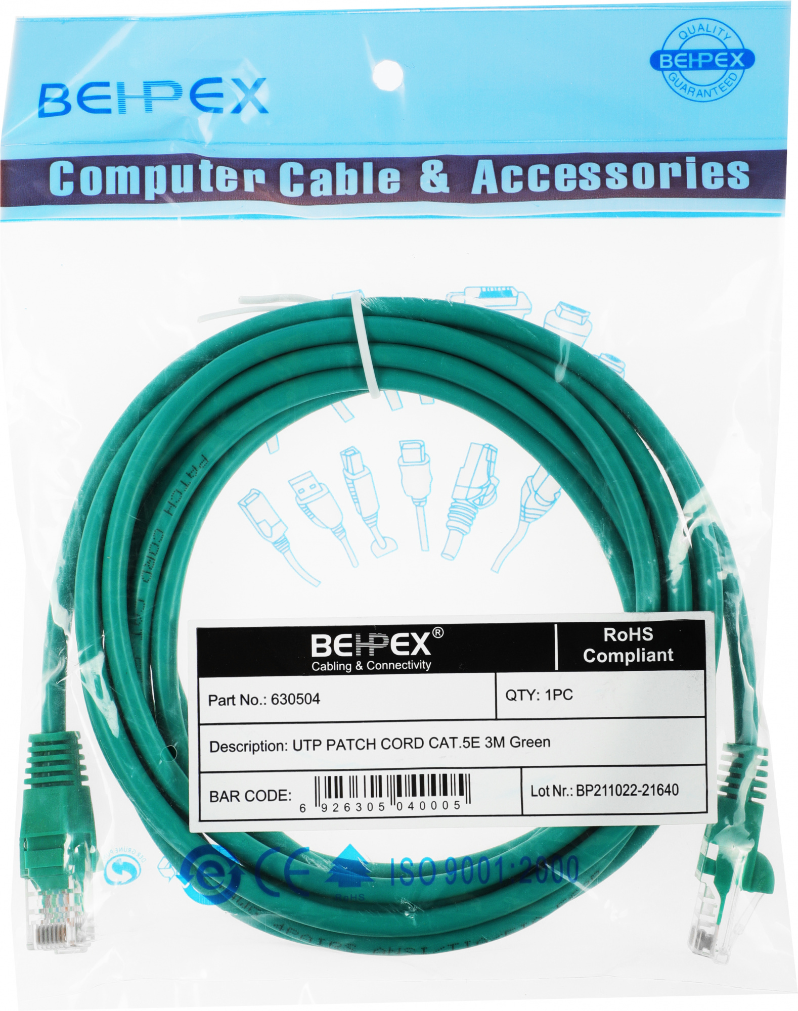 Патч-корд cat.5E molded 3м зеленый RJ-45 (m)-RJ-45 (m)