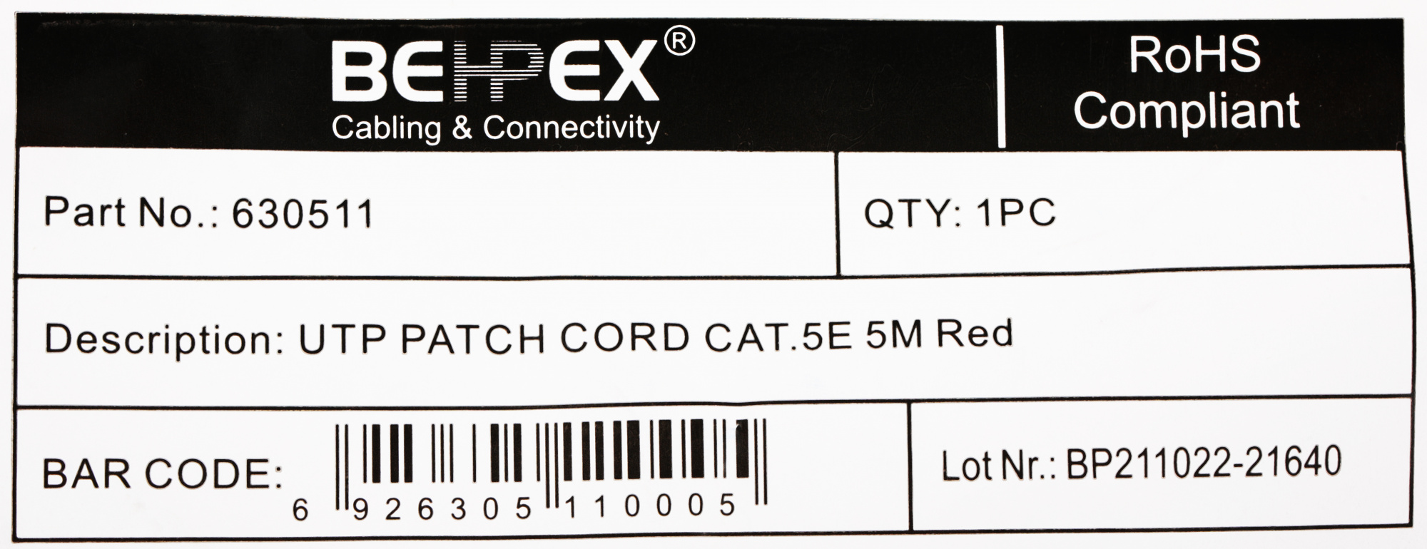 Патч-корд cat.5E molded 5м красный RJ-45 (m)-RJ-45 (m)