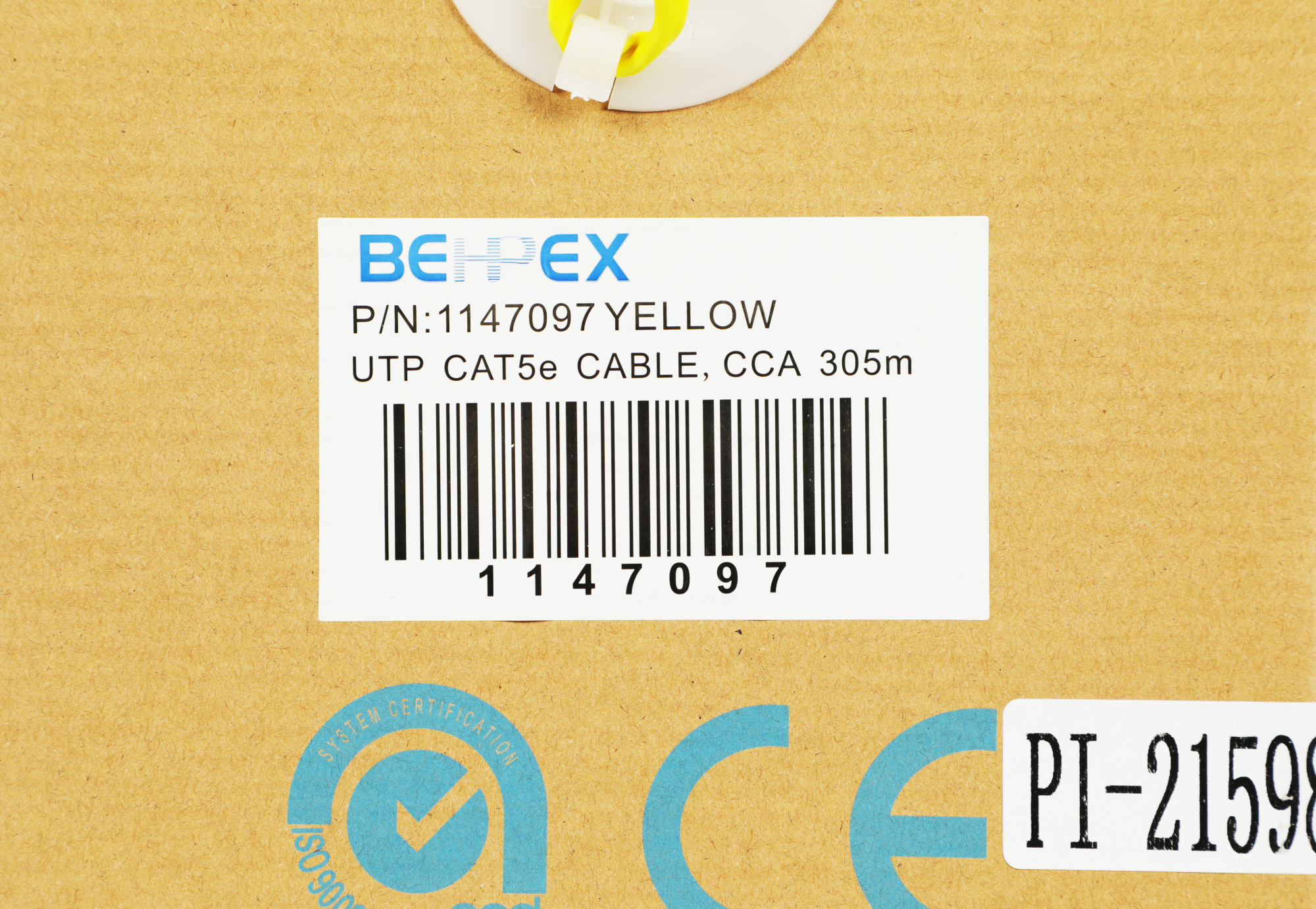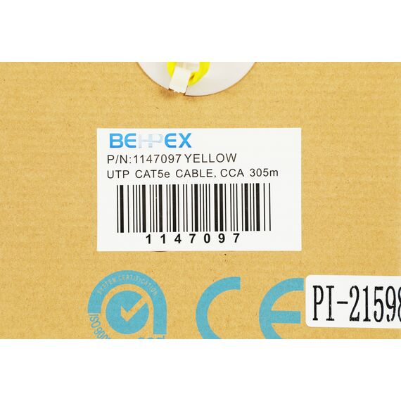 Кабель сетевой cat.5E solid 0.45мм 4 пары, CCA, 305м, желтый
