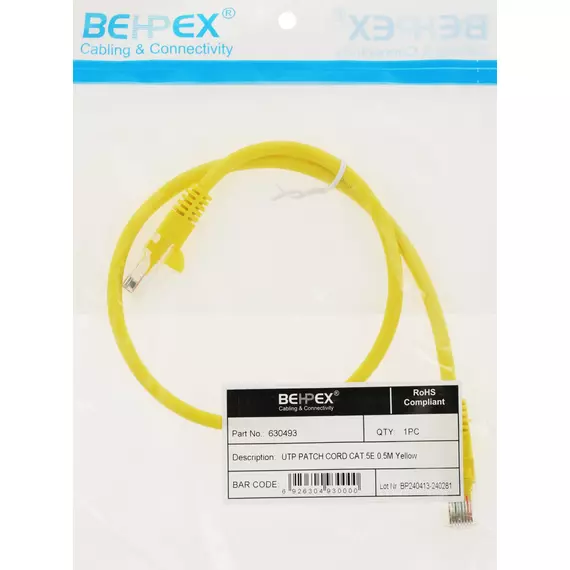 Патч-корд cat.5E stranded molded 0.5м желтый RJ-45 (m)-RJ-45 (m)