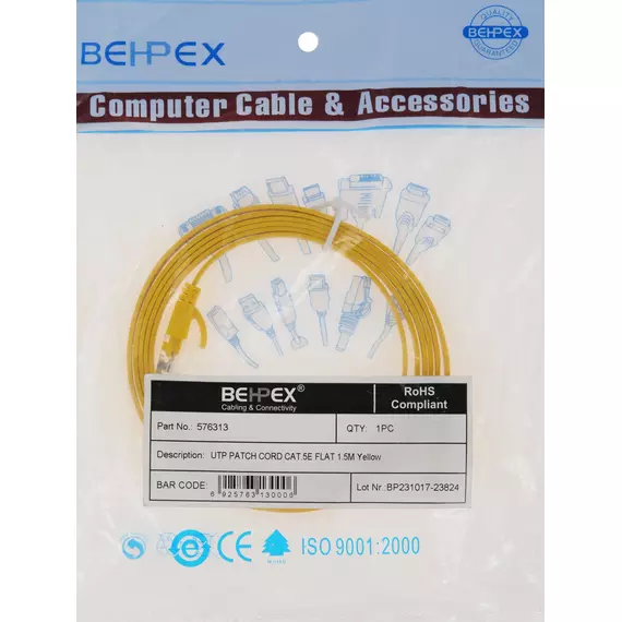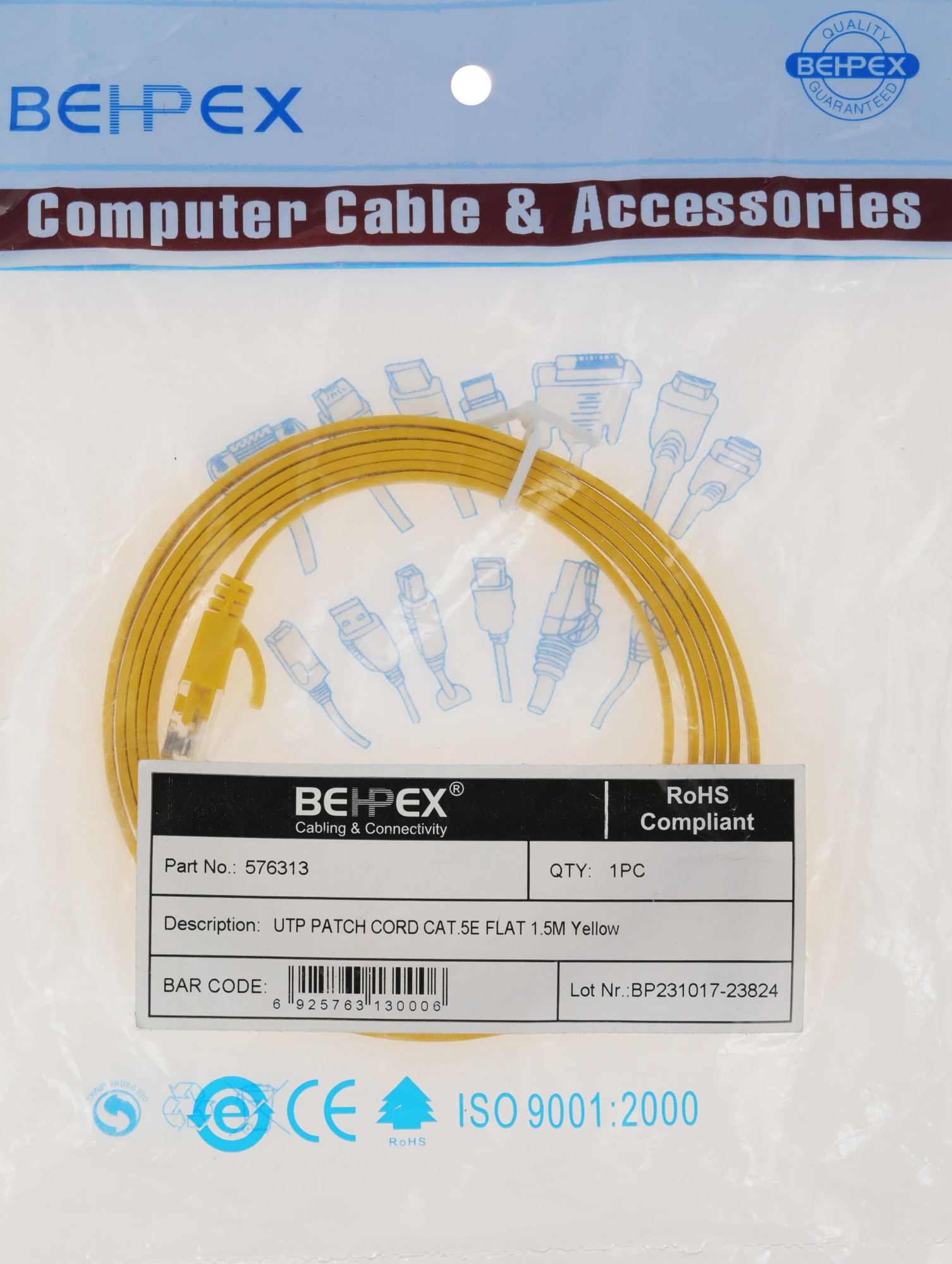 Патч-корд cat.5E stranded molded 1.5м желтый RJ-45 (m)-RJ-45 (m)