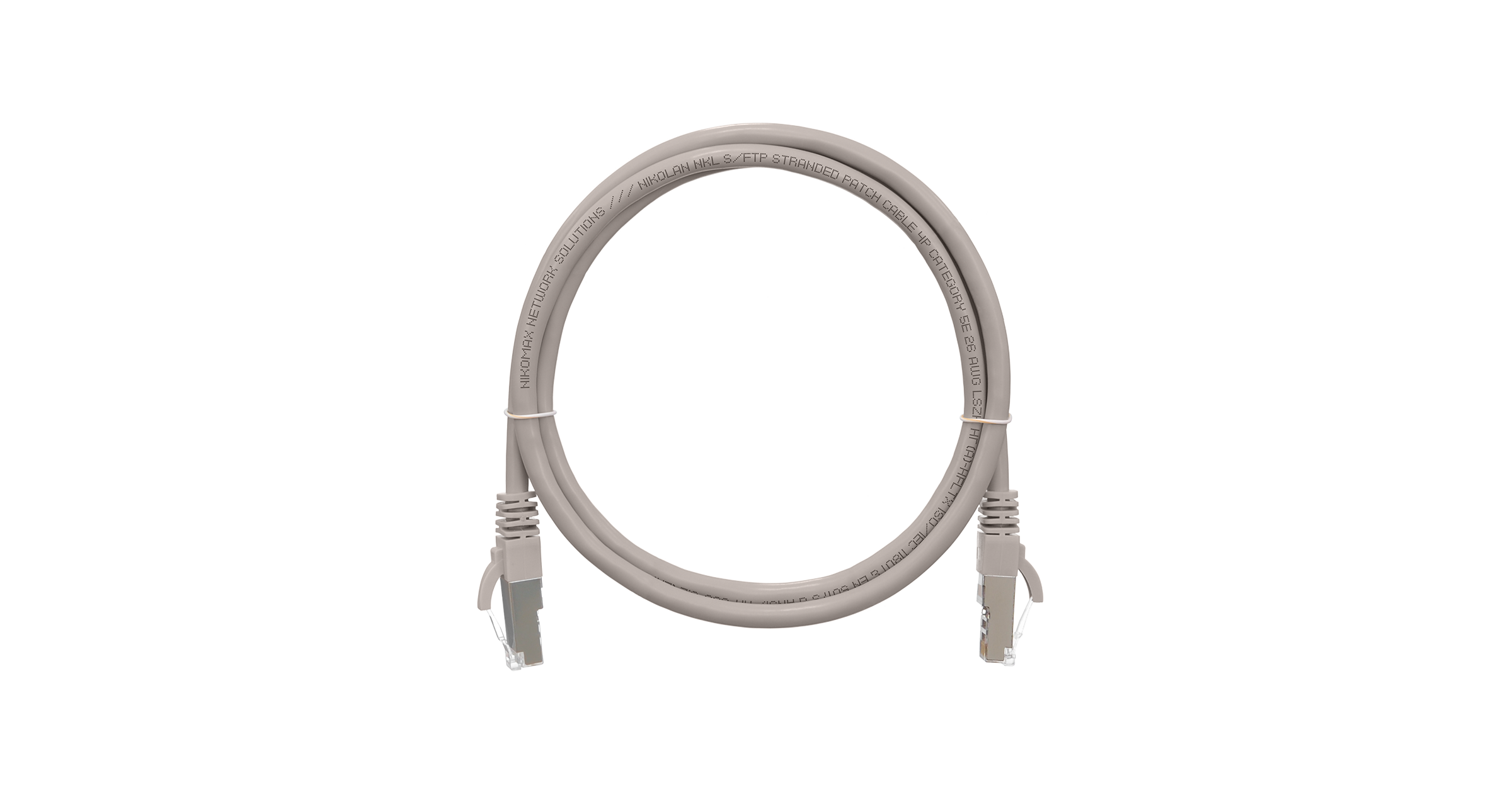 Коммутационный шнур Nikomax NMC-PC4SD55B-020-C-GY F/UTP 4 пары, Кат.5е (Класс D), 100МГц, 2хRJ45/8P8C, T568B, заливной, с защитой защелки, многожильный, BC (чистая медь), 26AWG (7х0,165мм), LSZH нг(А)-HFLTx, серый, 2м