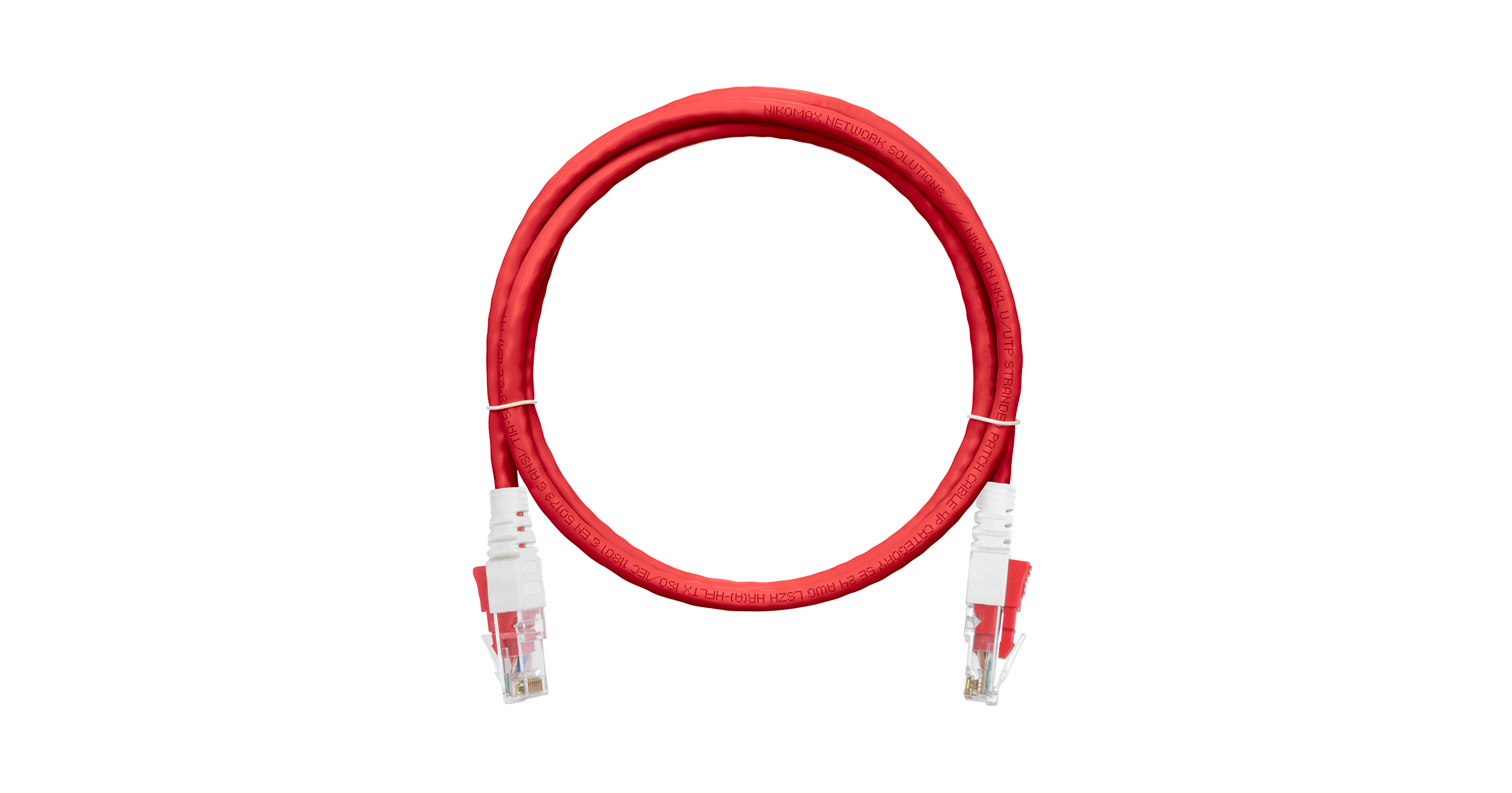 Коммутационный шнур Nikomax NMC-PC4UD55B-015-CS-RD с замком U/UTP 4 пары, Кат.5е (Класс D), 100МГц, 2хRJ45/8P8C, T568B, многожильный, BC (чистая медь), 24AWG (7х0,195мм), LSZH нг(А)-HFLTx, красный, 1,5м
