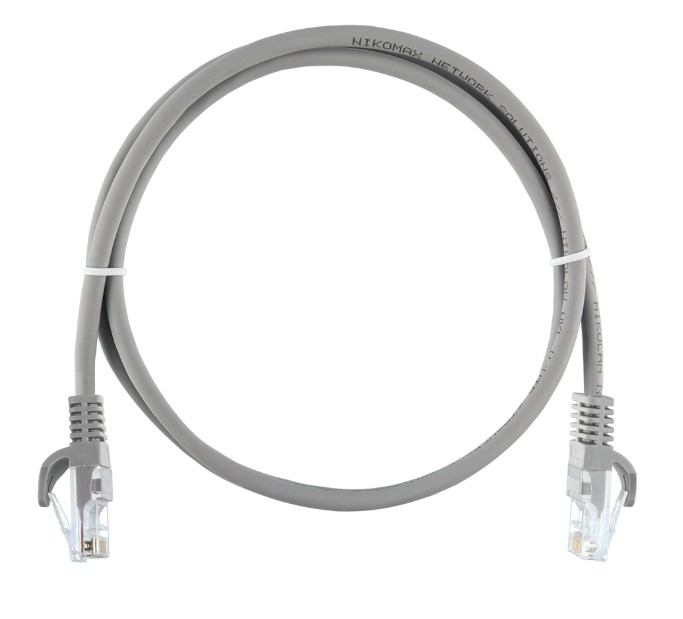 Коммутационный шнур Nikomax NMC-PC4UD55B-ES-010-C-GY Essential Line U/UTP 4 пары, Кат.5е (Класс D), 100МГц, 2хRJ45/8P8C, T568B, заливной, с защитой защелки, многожильный, BC (чистая медь), 25AWG (7x0,175мм), LSZH нг(А)-HFLTx, серый, 1м