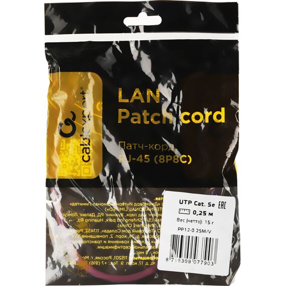 Патч-корд Premier 1000Гбит/с UTP 4 пары cat.5E CCA molded 0.25м фиолетовый RJ-45 (m)-RJ-45 (m) [PP12-0.25M/V]