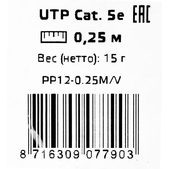 Описание Premier 1000Гбит/с UTP 4 пары cat.5E CCA molded 0.25м [PP12-0.25M/V]