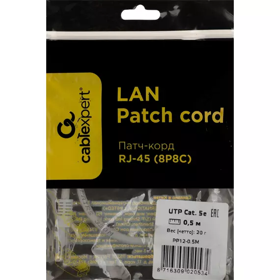 Описание Premier 1000Гбит/с UTP 4 пары cat.5E CCA molded 0.5м [PP12-0.5M]