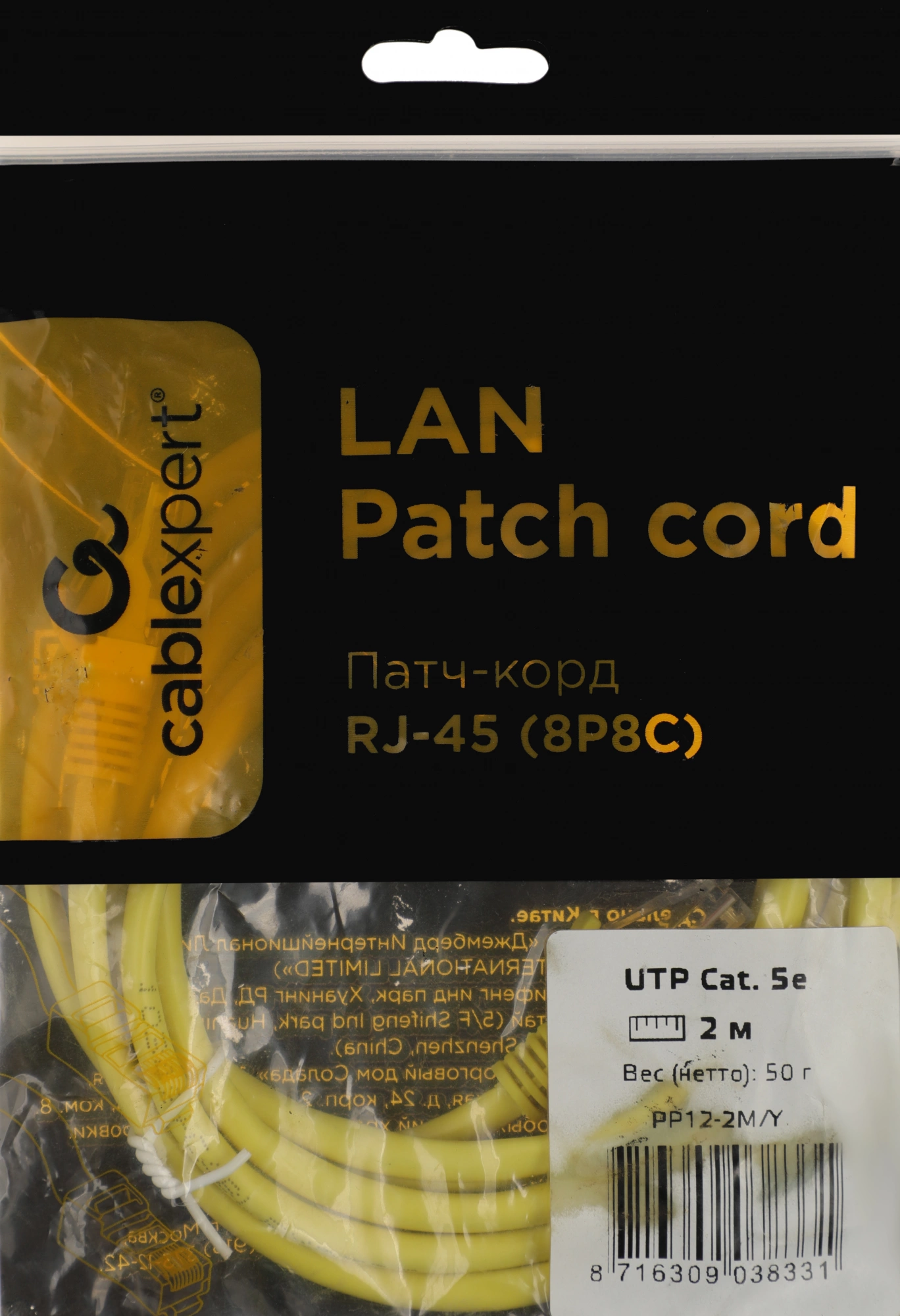 Патч-корд Premier 1000Гбит/с UTP 4 пары cat.5E CCA molded 2м желтый RJ-45 (m)-RJ-45 (m) [PP12-2M/Y]