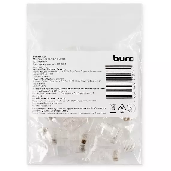 Коннектор BURO BU-CONRJ45-20PCS RJ45 прозрачный упак.:20шт