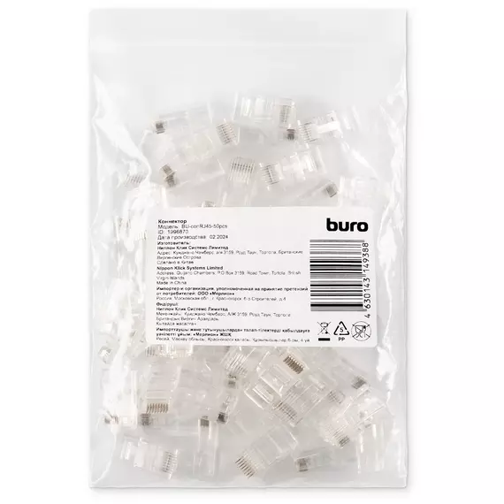 Коннектор BURO BU-CONRJ45-50PCS RJ45 прозрачный упак.:50шт