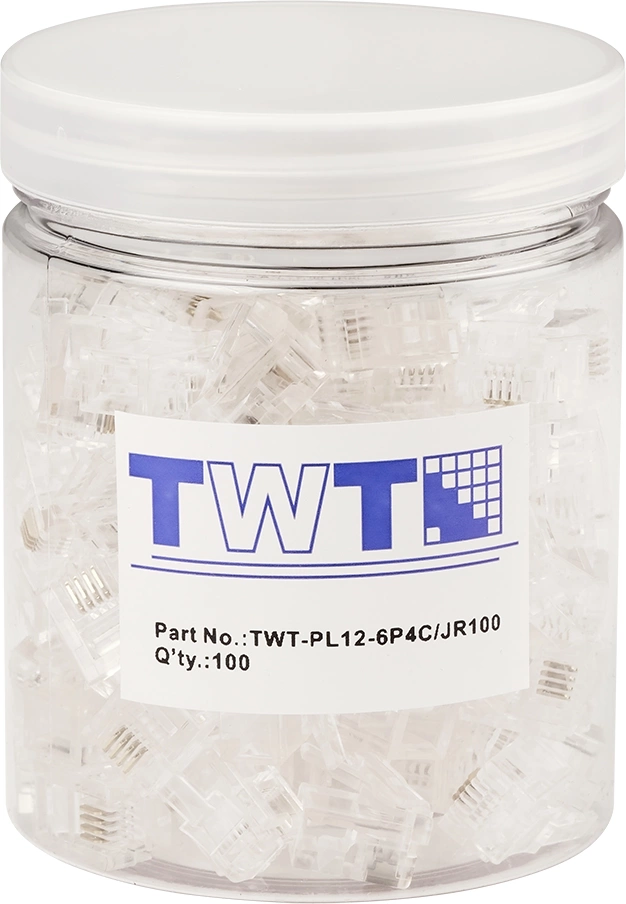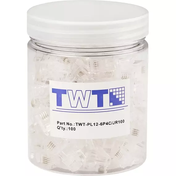 Коннектор Lanmaster TWT-PL12-6P4C/JR100 UTP кат.3 RJ12 прозрачный упак.:100шт