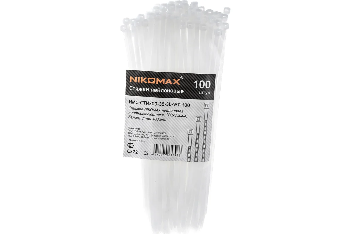 Стяжка нейлоновая Nikomax NMC-CTN200-35-SL-WT-100 неоткрывающаяся, 200х3,5мм, белая, уп-ка 100 шт