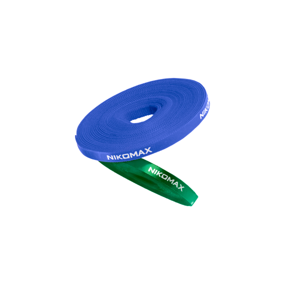 Кабельные стяжки на основе текстильной застежки предназначены для бандажирования кабеля (обвязывания в пучок), а также для фиксации кабелей и коммутационных шнуров к лоткам, органайзерам и другому пригодному оборудованию. Текстильные кабельные стяжки имеют простую конструкцию, с одной стороны контактная лента, с другой микропетли. Мягкая текстура стяжек исключает риск повреждения кабельных пучков. Являются многоразовым решением что обеспечивает быстрый и удобный монтаж. Данный вариант текстильных стяжек представляет собой ленту NIKOMAX в рулонах по 5 метров. Так же доступны в различном цветовом исполнении.