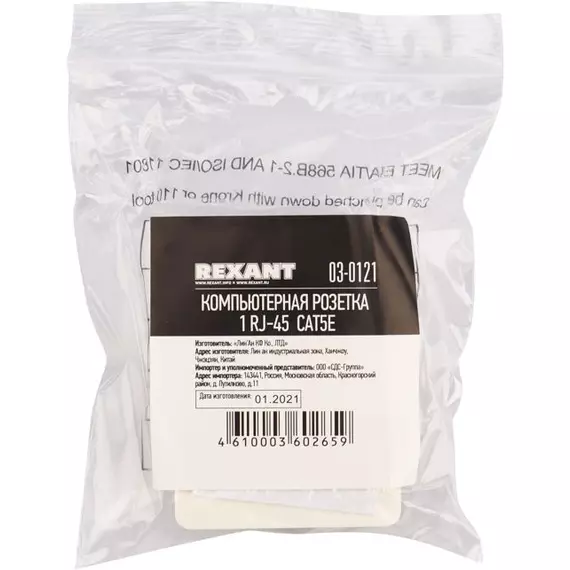 Розетка Rexant 03-0121 комп.RJ45 1 кат.5E UTP бел.