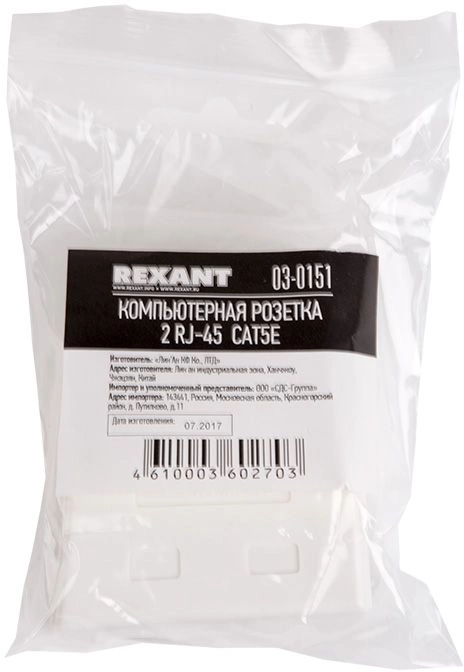 Розетка Rexant 03-0151 комп.RJ45 2 кат.5E UTP бел.