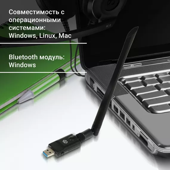 | Особенности | чип RTL8822BU, 2 диапазона WiFi 2.4ГГц и 5.8ГГц, Кнопка WPS |