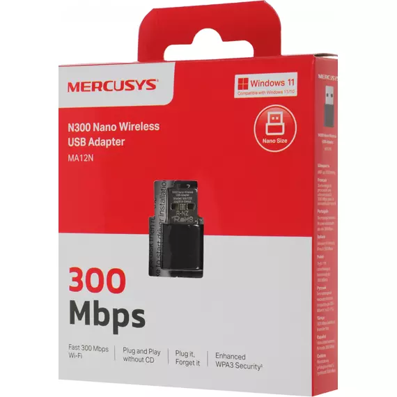 Сетевой адаптер Wi-Fi Mercusys MA12N N300 USB 2.0 ант.внутр. 1ант.