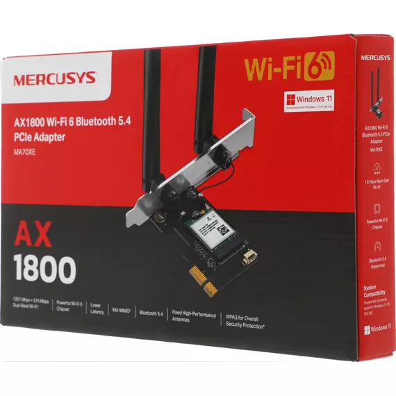 Сетевой адаптер Wi-Fi + Bluetooth Mercusys MA70XE AX1800 PCI Express ант.внеш.несъем. 2ант