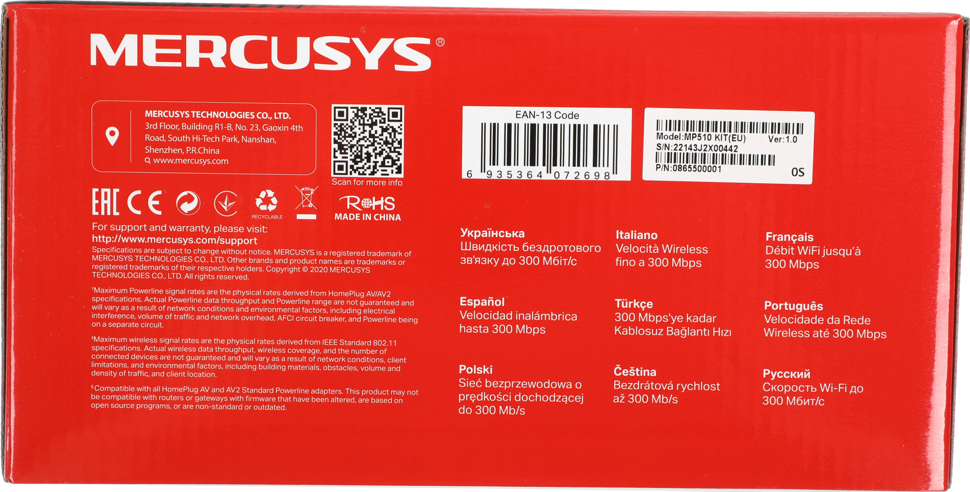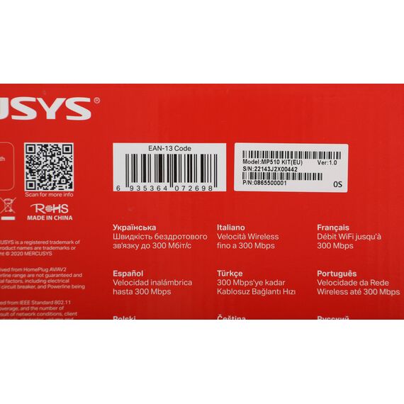 Сетевой адаптер HomePlug AV Mercusys MP510 KIT AV1000 Gigabit Ethernet ант.внеш.несъем. 2ант.