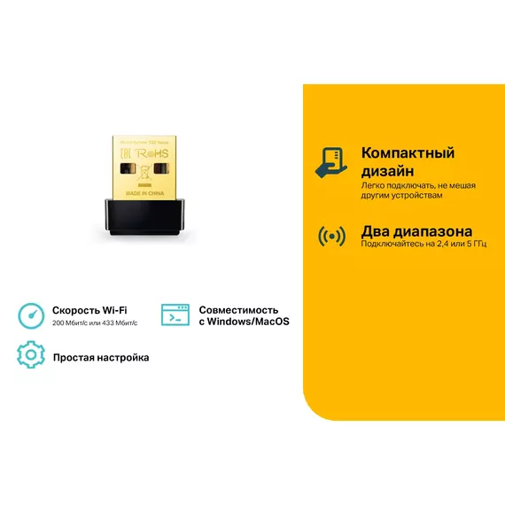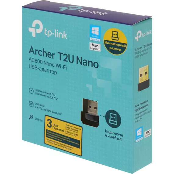 Сетевой адаптер Wi-Fi TP-Link Archer T2U NANO AC600 USB 2.0