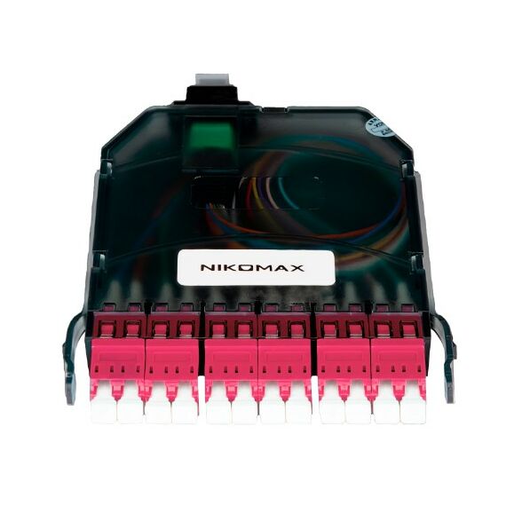 Данные кассетные модули предназначены исключительно для монтажа в кассетную панель NIKOMAX NMF-RP12-BLANK-CT-MTP-1U-BK. Оптические кассеты выполнены в пластиковых полупрозрачных корпусах и представляют собой готовые претерминированные решения емкостью на 12 портов LC. Внутри кассеты установлена кабельная сборка Hydra fan-out: 1х MTP Elite-папа на 12х LC коннекторов.