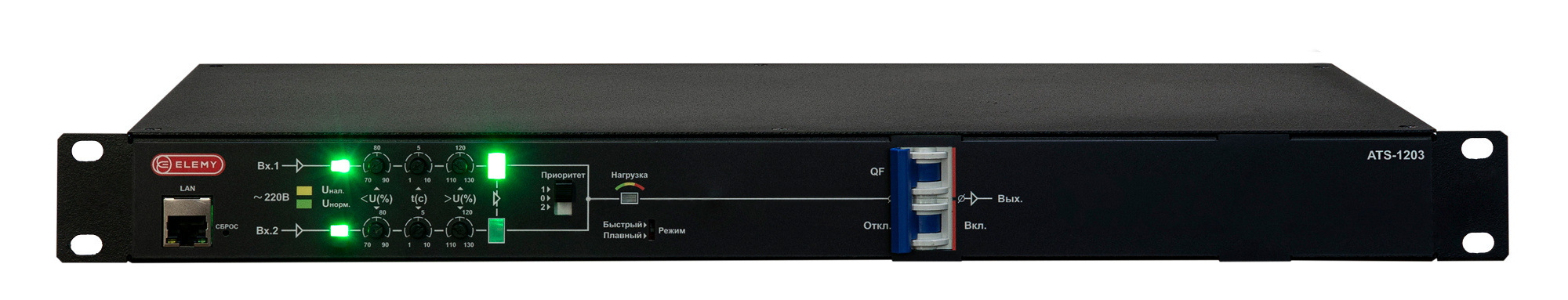 АВР Elemy ATS-1203/16/S/E/DO 1U 19" ввод: 2xС20 выход: 1xC19-6xС1316A черный