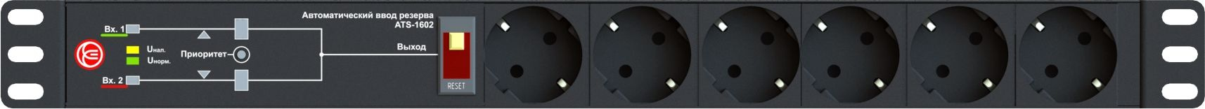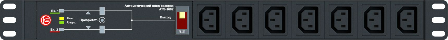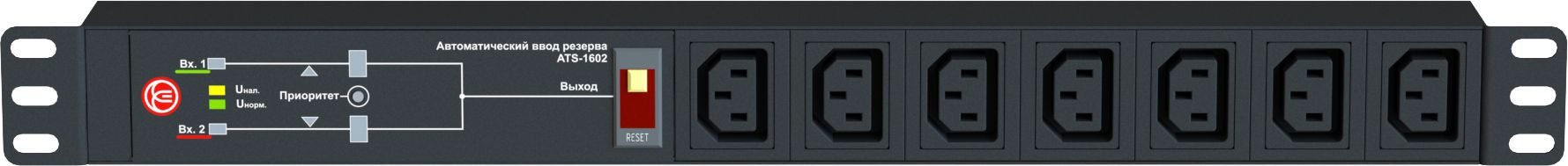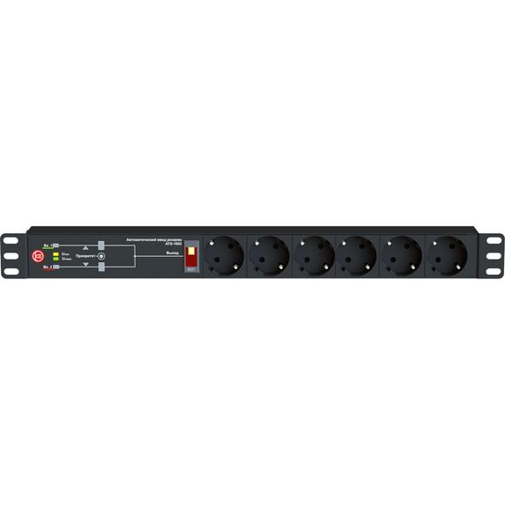 АВР Elemy ATS-1602 1U 19" ввод:2xIEC C14 выход:6xSchuko8A черный