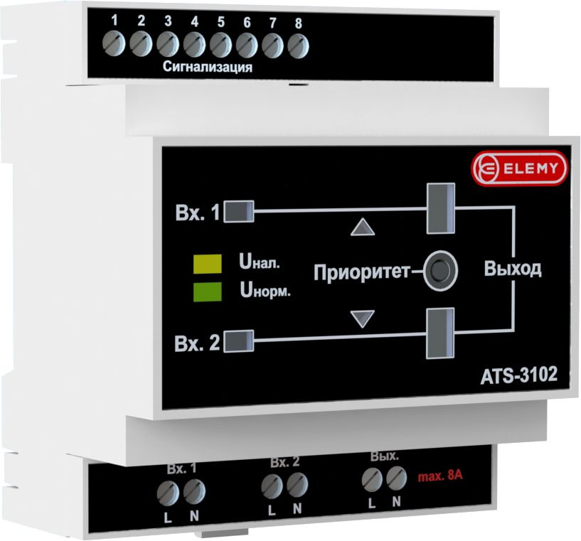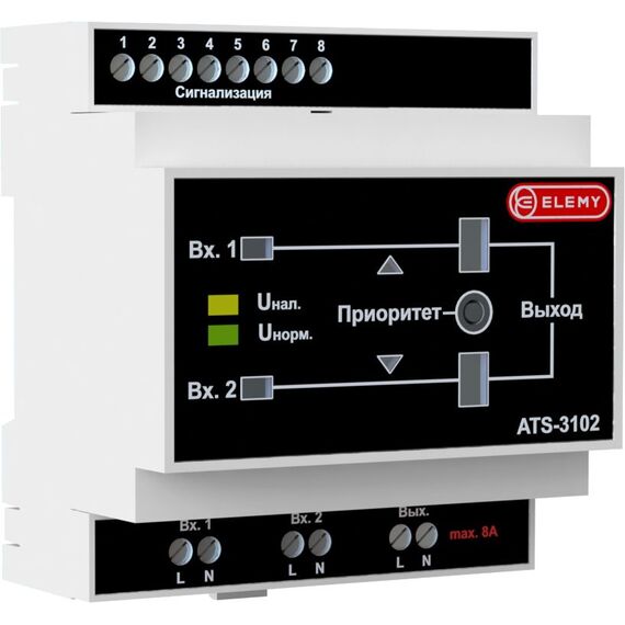 АВР Elemy ATS-3102 5DIN ввод:2xвинтовая клема выход:1xвинтовая клема8A серый