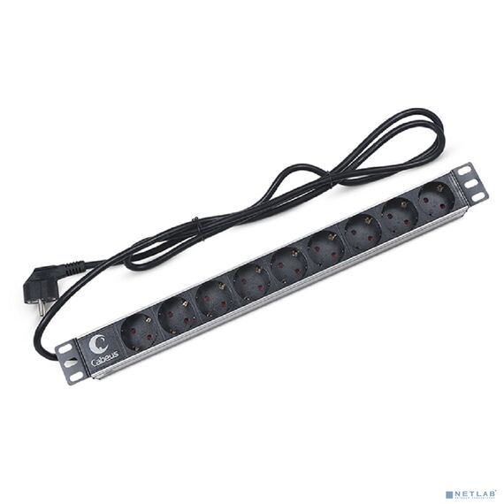 Блок евророзеток Cabeus PDU-9P-2EU для 19" шкафов, горизонтальный, 9 розеток, 16 A, без выключателя, шнур 2м, алюминиевый корпус, немецкий стандарт