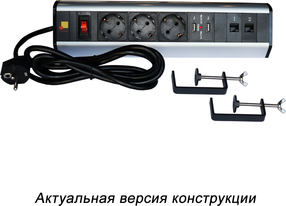 Блок распределения питания Lanmaster LAN-WA-DC/3G+2UC+2C6 гор.размещ. 3xSchuko 2xUSB 2xRJ45 базовые 16A Schuko 3м