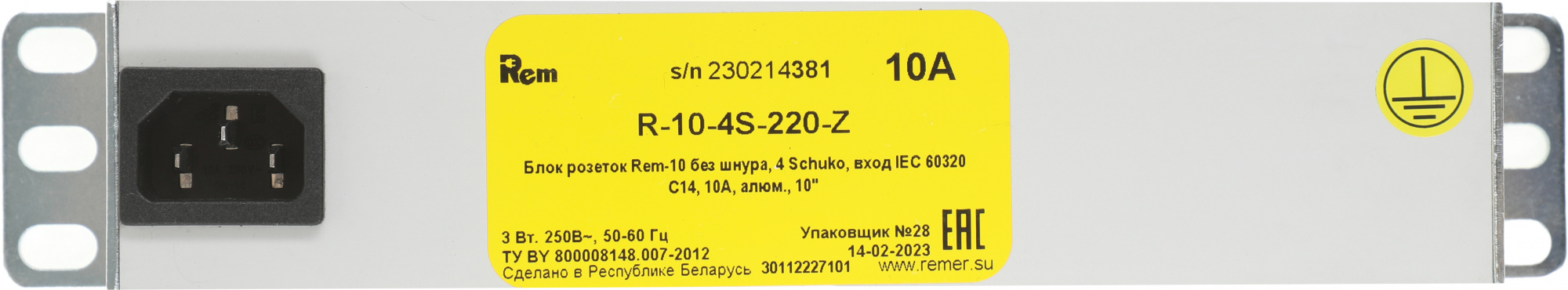 Блок распределения питания Rem R-10-4S-220-Z гор.размещ. 4xSchuko базовые 10A C14