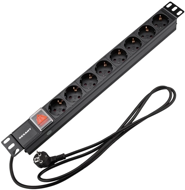 Блок распределения питания Rexant 04-0104-1 гор.размещ. 8xCEE7/4 базовые 16A CEE7/7 2м