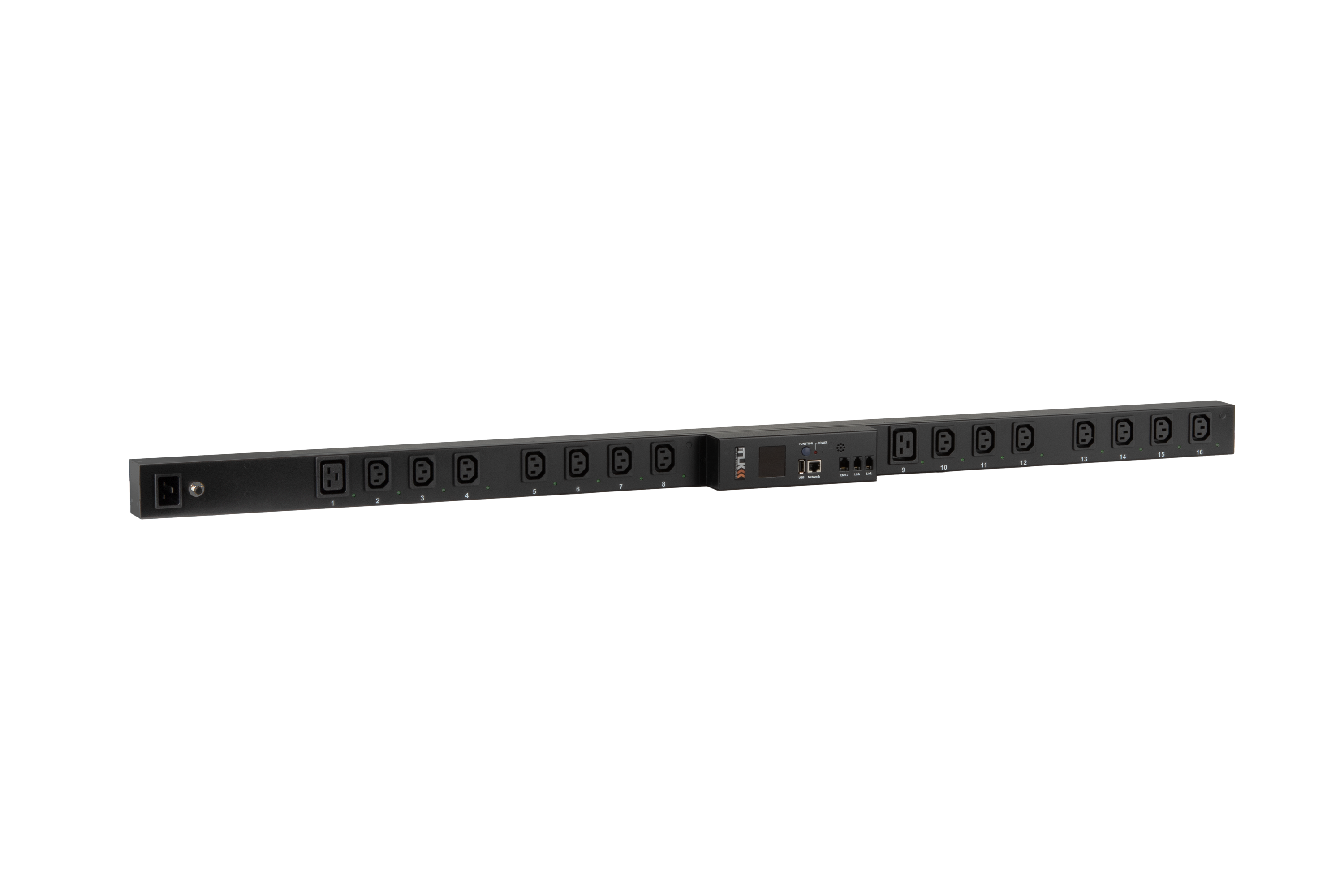 Блок контролируемых электрических розеток TLK TLK-PPI-SW-A14B02-M21-WCE-BK вертикальная, Серия SW, (включение и отключение каждой розетки), 14 розеток C13, 2 розетки С19, макс. нагрузка 16 А