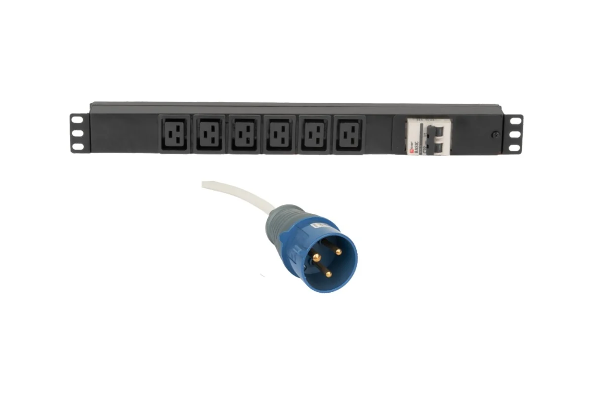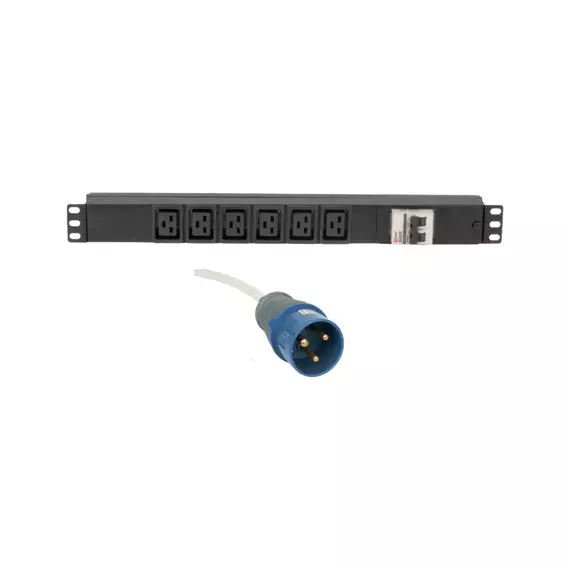 Блок электрических розеток TLK TLK-RSB06-M-05-BK 19", 6 гнезд C19, макс. нагрузка 32 А, шнура питания, вход шнур 2.5 м