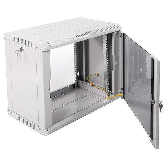 Шкаф коммутационный настенный ЦМО ШРН-Э-9.350 ШРН-ЭКОНОМ 9U 600x350мм пер.дв.стекл 85кг серый 300мм 13.8кг 180град. 480мм