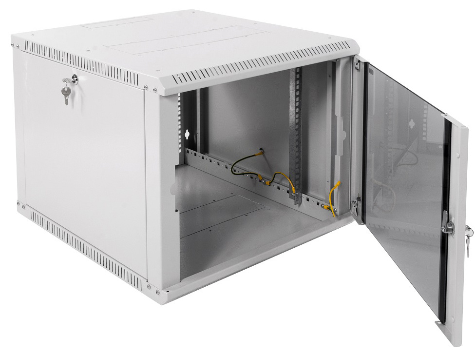 Шкаф коммутационный настенный ЦМО ШРН-Э-9.650 9U 600x650мм пер.дв.стекл 65кг серый 600мм 20.7кг 180град. 480мм