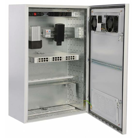Шкаф коммутационный настенный ЦМО ШТВ-Н-6.6.3-4ААА 6U 600x330мм пер.дв.вентил. задн.дв.стал.лист несъемн.бок.пан. 57кг серый 220мм 27кг 400мм IP65 уличный всепогодный