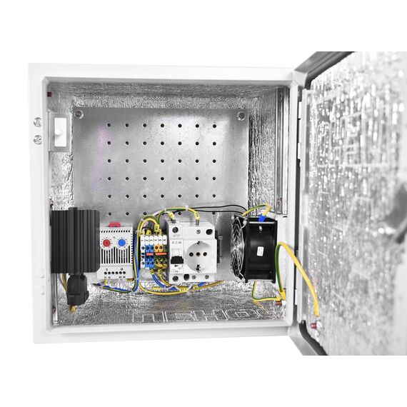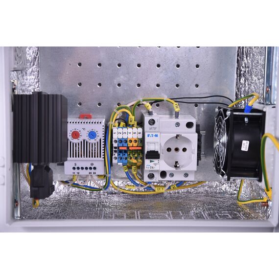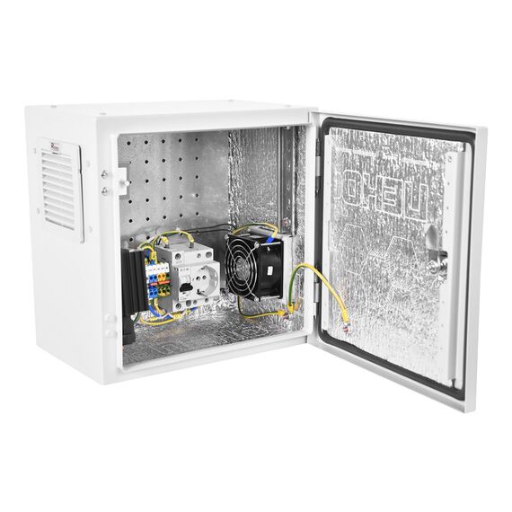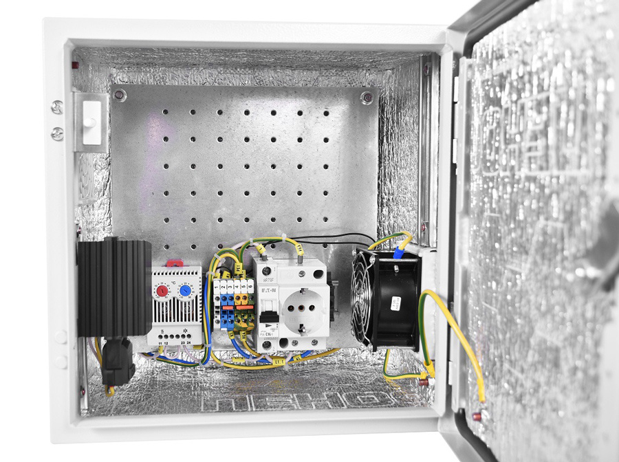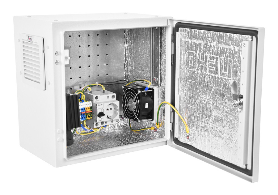 Шкаф монтажный Эконом настенный ЦМО ШТВ-НЭ-4.4.25-3ВВА-Т1 400x250мм пер.дв.стал.лист задн.дв.спл.стал.лист несъемн.бок.пан. серый 220мм 13кг 400мм уличный всепогодный с вентилятором с нагревателем с силовыми розетками укомплектованный 60Вт