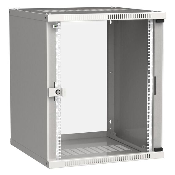 Шкаф коммутационный Linea WE настенный ITK LWE3-15U66-GF 15U 600x600мм пер.дв.стекл направл.под закл.гайки 50кг серый 550мм 22.3кг 200град. 715мм IP20 IK08 сталь