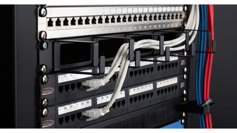 - Следствием этого является надежность системы и простота ее обслуживания. Кабельный органайзер NIKOMAX NMC-OK600H-1U-BK-2 состоит из стального (1,6 мм) основания, на которое установлены металлические кольца (2,2 мм)