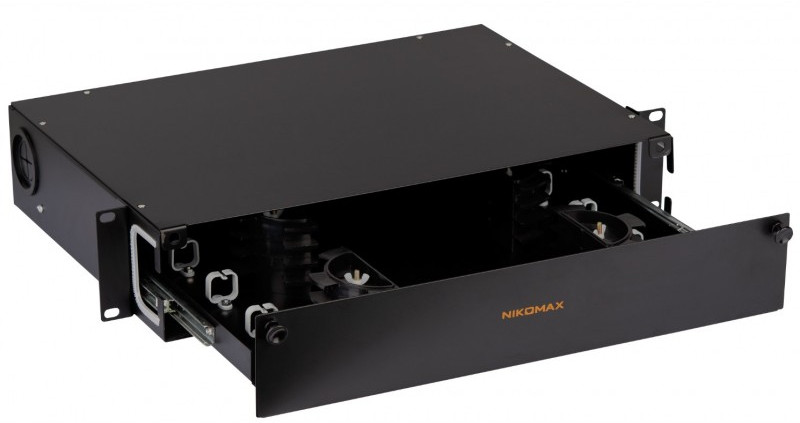 Органайзер оптический Nikomax NMC-OKFP-SL-2U-BK 19", 2U, металлический, с пластиковыми направляющими, черный