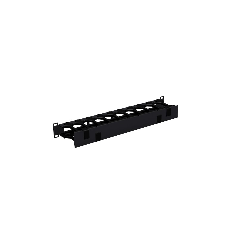 Кабельный органайзер Nikomax NMC-OP100CF-1U-BK 19", 1U, полезная глубина 100 мм, металлический, с пластиковыми пальцами, с крышкой, черный