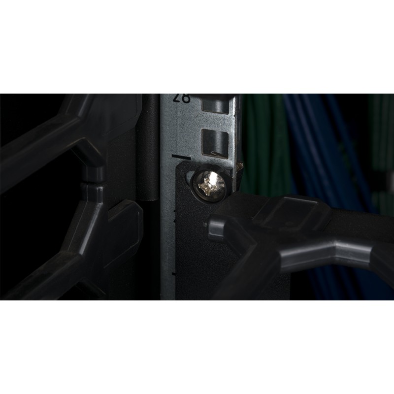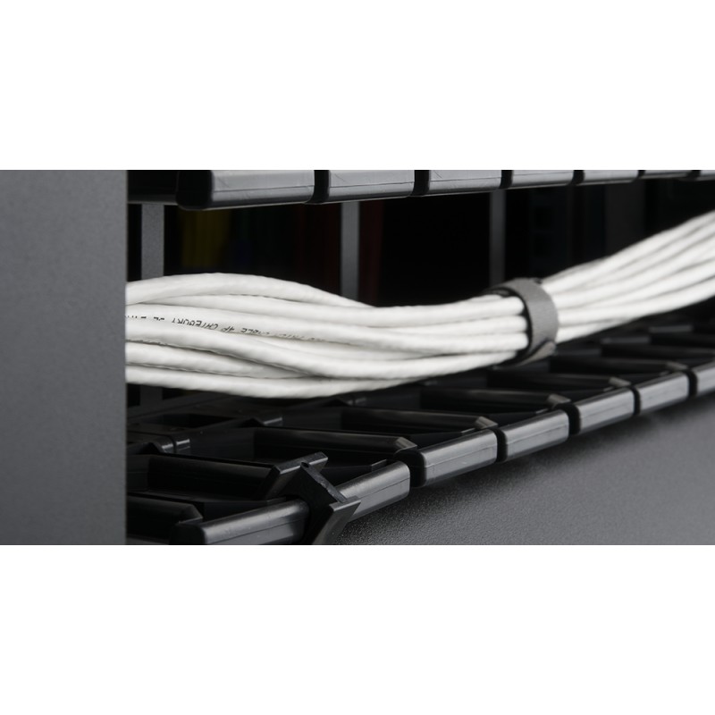 Кабельный органайзер NMC-OP100CF-1U-BK имеет высоту в 1U и полезную глубину в 100 мм, что позволяет охватить ещё больший объём шнуров. А универсальную крышку можно откинуть в любую сторону, либо же полностью снять, что наряду с дополнительными монтажными отверстиями в несущей конструкции добавит удобства при разводке патч-кордов.
