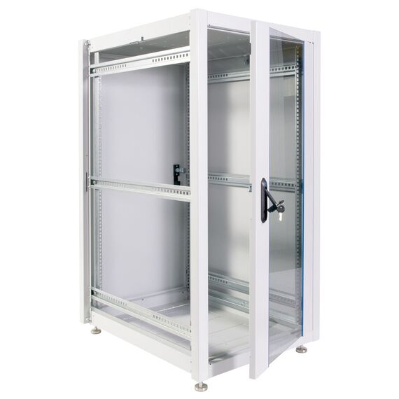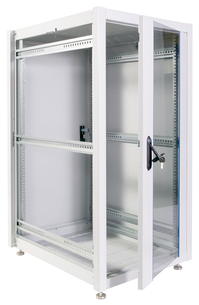 Шкаф коммутационный ЦМО ШТК-Э-24.6.6-13АА напольный 24U 600x600мм пер.дв.стекл металл 2 бок.пан. направл.под закл.гайки 540кг серый 515мм 51кг 180град. 1187мм IP20 сталь