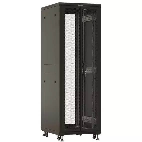 Шкаф серверный Hyperline TTBR-4261-DD-RAL9004 напольный 42U 600x1000мм пер.дв.перфор. задн.дв.перфор. 2 бок.пан. направл.под закл.гайки 800кг черный 910мм 122.2кг 2055мм IP20 сталь